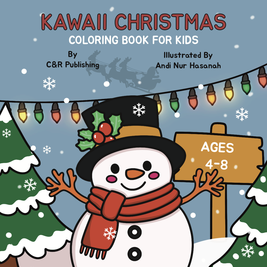 Kawaii Christmas Coloring Book for Kids Ages 4-8